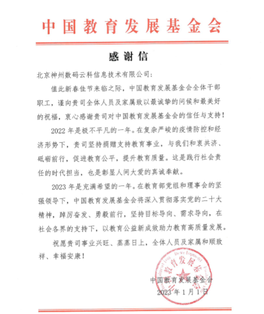 近期,凯发k8国际收到中国教育开展基金会的感谢信,以感谢凯发k8国际2022年在职业教育领域的贡献和实践,尤其是在全国职业院校大赛(中高职组)中对大赛顺利召开所付出的努力。